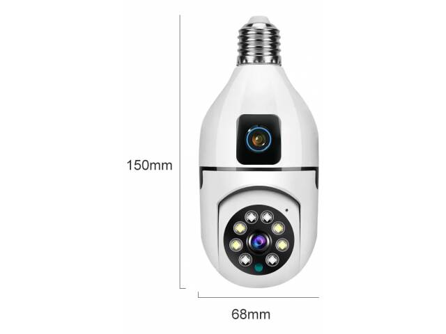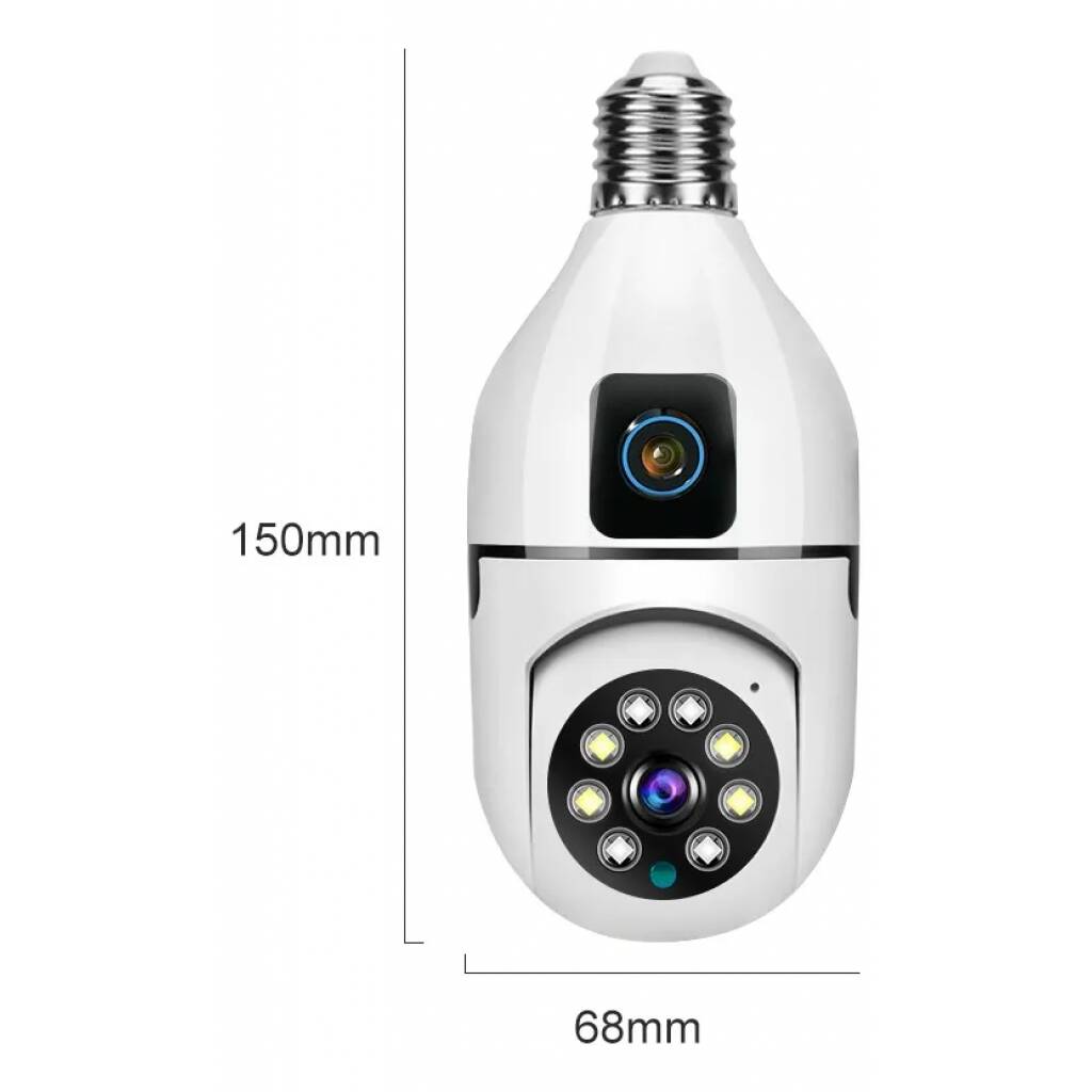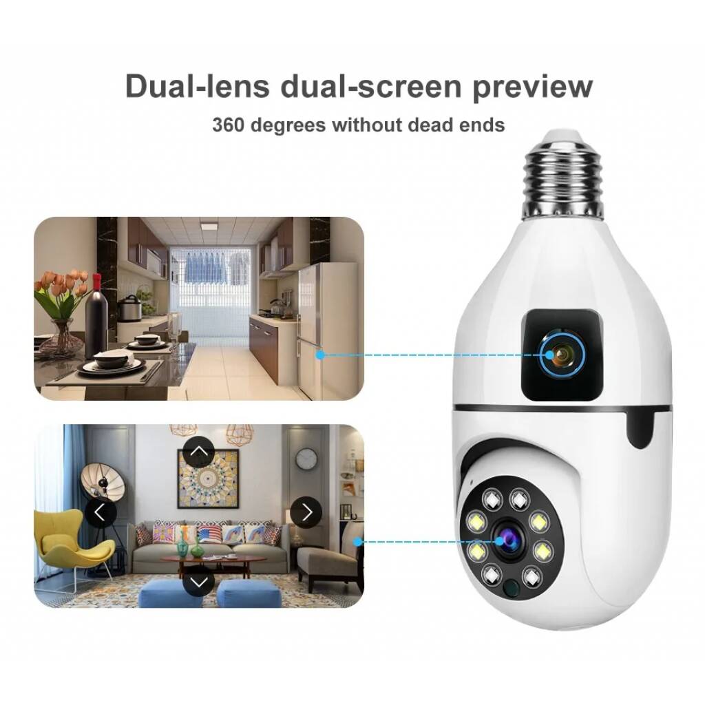 Cámara Seguridad Doble Lente 2mp Inalámbrica Wifi Rosca E27 Blanco