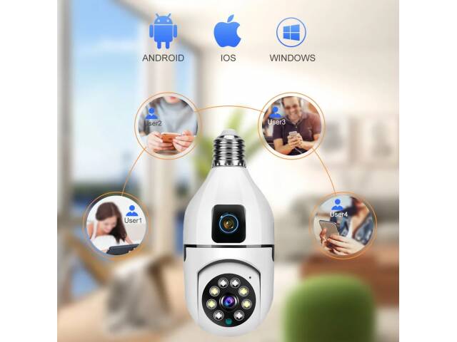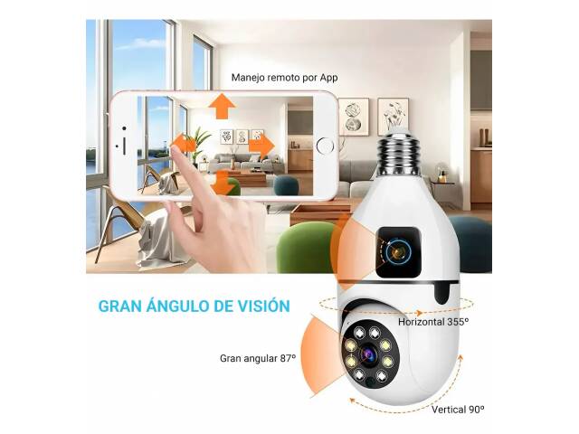Cámara WI-FI doble lente. Funciona a través de App. Rosca e27, el pase de lamparita común. Fácil instalación. Fácil manejo. Funciona para Android, ios, Windows. Puede ver la cámara mas de una persona a la vez.