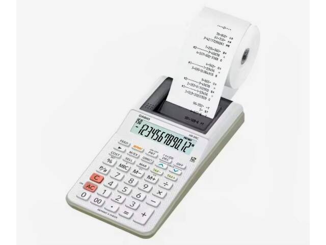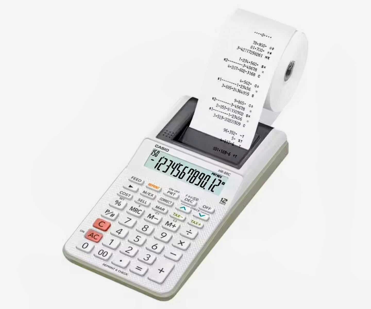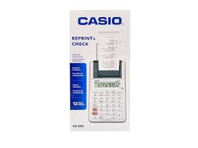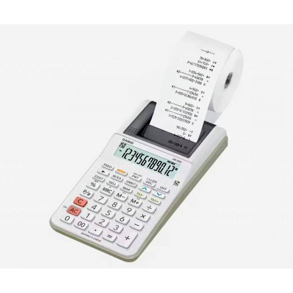 Calculadora Casio con impresora HR-8 de 12 dígitos, ideal para cálculo de impuestos y conversión de divisa. Cuenta con un display grande para fácil visualización, memoria independiente, funciones de porcentaje y cálculo de margen de ganancias. Incorpora lógica algebraica simple y marcadores de coma cada 3 dígitos. La velocidad de impresión es de 1,6 líneas por segundo y utiliza un rodillo de tinta modelo IR-40. El ancho de papel compatible es de 58 mm y tiene función de apagado automático. Incluye la función REPRINT para reimpresión y post impresión, así como CHECK para chequeo y corrección de hasta 150 pasos anteriores.